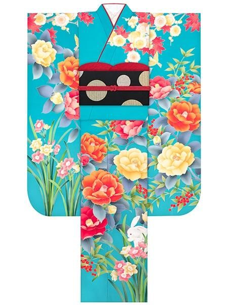 振袖レンタルセット かくれんぼ兎(ターコイズ)/帯 七宝(ターコイズ)