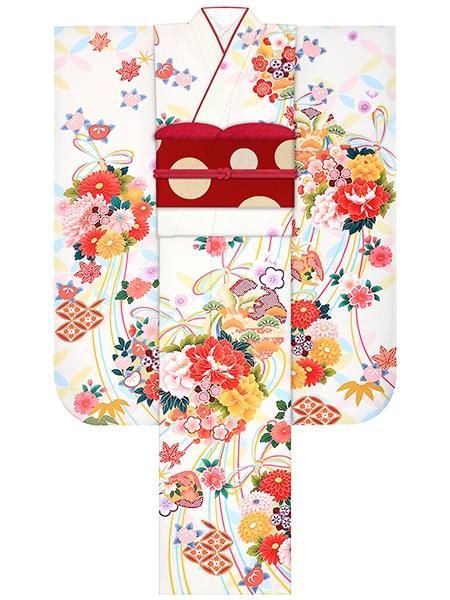 正絹振袖レンタルセット アンティークローズ(オフ)/帯 縞(オフ)