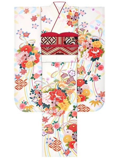 振袖レンタルセット 七宝薬玉(オフ)/帯 花菱亀甲(緑)
