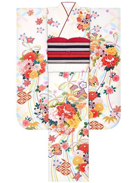 振袖レンタルセット ロココ(ピンク)/帯 縞(オフ)