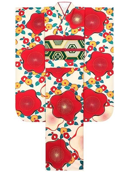 振袖レンタルセット 大梅に椿(赤)/帯 亀甲(黒)