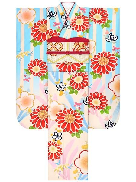 振袖レンタルセット 菊(ベージュ)/帯 矢羽根(ターコイズ)
