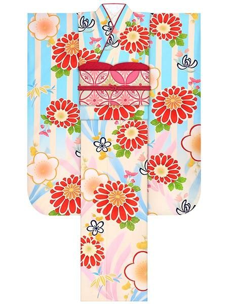 振袖レンタルセット 梅と椿と楓(オフ)/帯 矢羽根(ターコイズ)