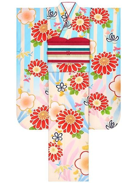 振袖レンタルセット 四君子(水色)/帯 縞(オフ)