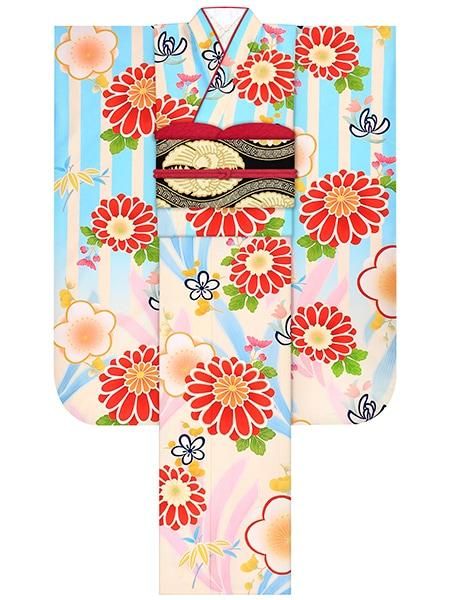 振袖レンタルセット 梅と椿と楓(オフ)/帯 花菱亀甲(白金)