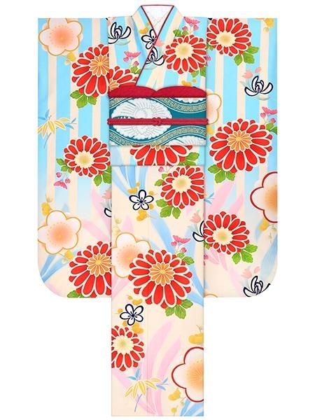 振袖レンタルセット 四君子(水色)/帯 おしどり(赤)