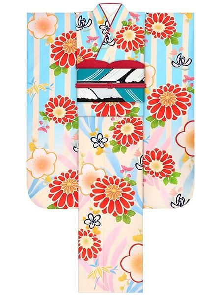 正絹振袖レンタルセット 祝い菊(ボルドー)/帯 縞(オフ)