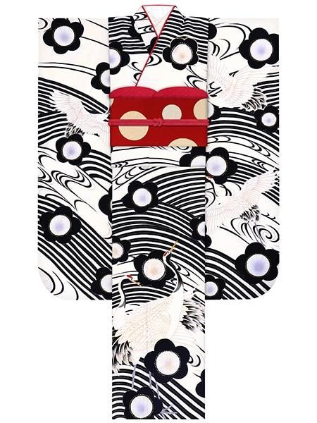 振袖レンタルセット 光琳梅(黒)/帯 亀甲(赤)