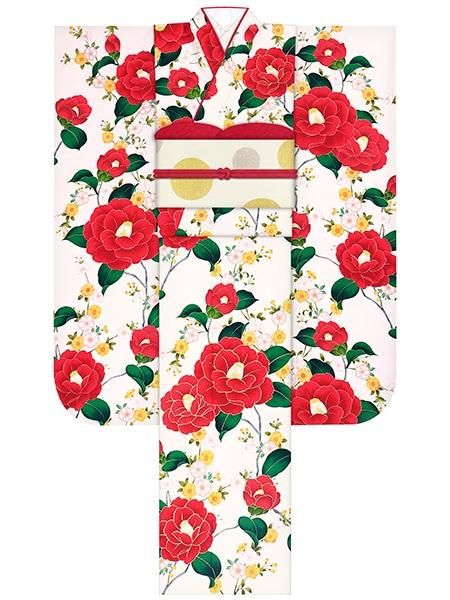 振袖レンタルセット 乙女椿(オフ)/帯 花菱亀甲(黒)