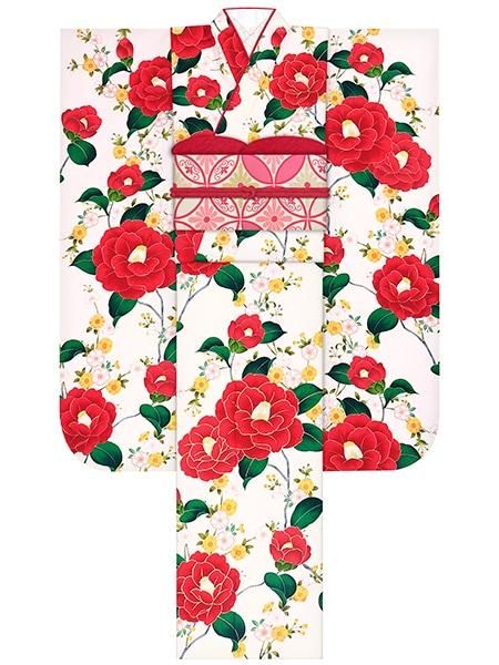振袖レンタルセット 大梅に椿(赤)/帯 更紗(オフ)