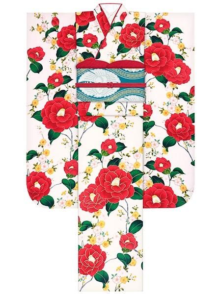 振袖レンタルセット 江戸牡丹(モノトーン)/帯 ドット(オフ)