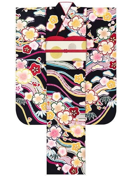 振袖レンタルセット アネモネブーケ(黒)/帯 おしどり(白銀)