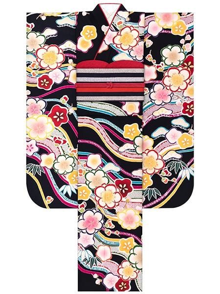 振袖レンタルセット 光琳梅(黒)/帯 縞(黒)