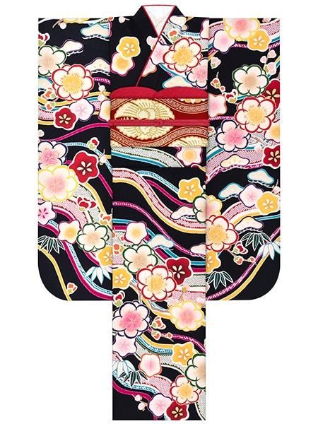 振袖レンタルセット アネモネブーケ(黒)/帯 亀甲(黒)