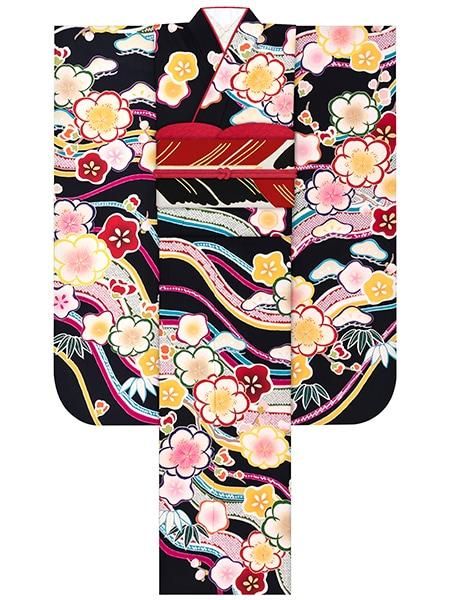 振袖レンタルセット 梅と椿と楓(オフ)/帯 縞(黒)