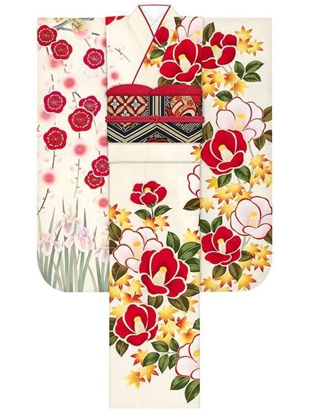 正絹振袖レンタルセット 軍鶏牡丹(オフ)/帯 ドット(オフ)