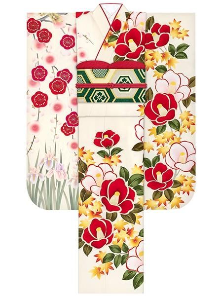 振袖レンタルセット アネモネブーケ(オフ)/帯 ドット(オフ)