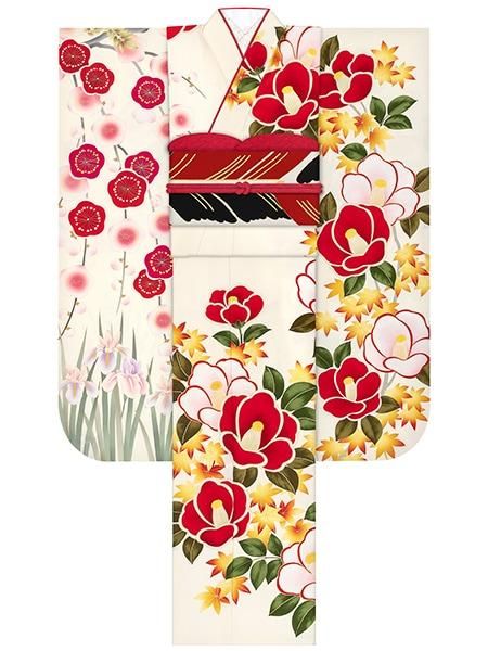 振袖レンタルセット 華亀甲(オフ)/帯 縞(オフ)