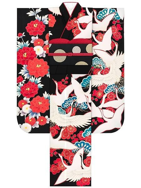 振袖レンタルセット 光琳梅(黒)/帯 七宝(ターコイズ)