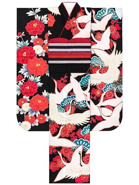 振袖レンタルセット 疋田乱菊(赤)/帯 花菱亀甲(黒)
