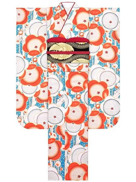 振袖レンタルセット 光琳梅(黒)/帯 ドット(オフ)