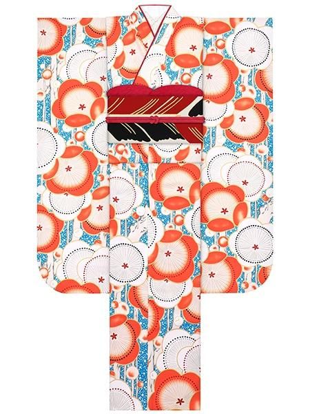 振袖レンタルセット アネモネブーケ(オフ)/帯 更紗(黒)