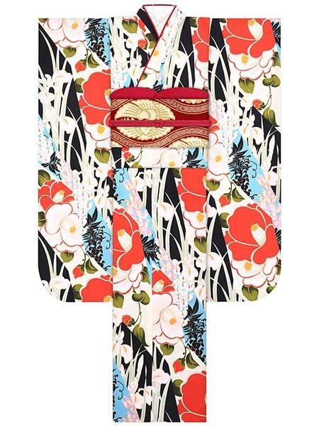 振袖レンタルセット アネモネブーケ(オフ)/帯 ドット(赤)