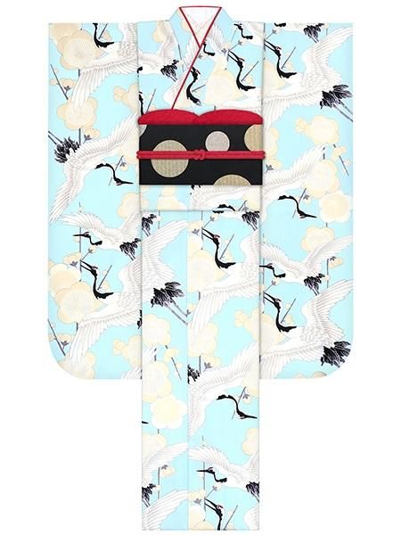 振袖レンタルセット 鶴と牡丹(黒)/帯 亀甲(赤)