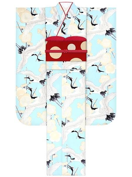 振袖レンタルセット かくれんぼ兎(ターコイズ)/帯 七宝(白金)