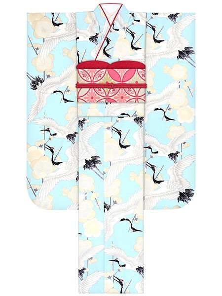 振袖レンタルセット つばき家紋(カラシ)/帯 おしどり(赤)