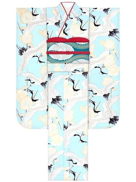 振袖レンタルセット つばき家紋(オフ)/帯 矢羽根(ターコイズ)