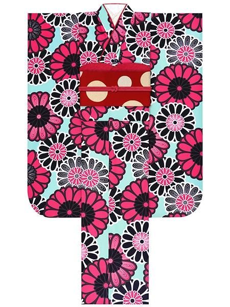 振袖レンタルセット あられ梅(空色)/帯 矢羽根(赤)
