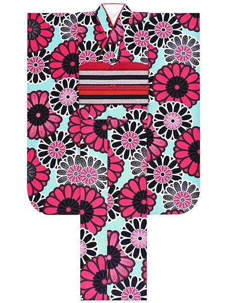 振袖レンタルセット 乙女椿(オフ)/帯 おしどり(ターコイズ)