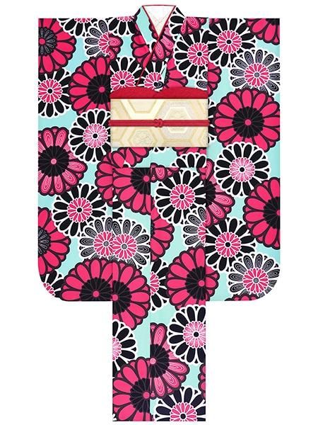 振袖レンタルセット 大菊(浅葱色)/帯 亀甲(赤)