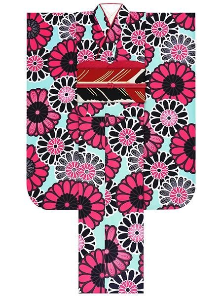 振袖レンタルセット かくれんぼ兎(ターコイズ)/帯 七宝(白金)