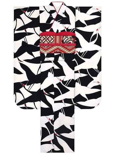 振袖レンタルセット 吉祥梅鶴(黒)/帯 亀甲(黒)