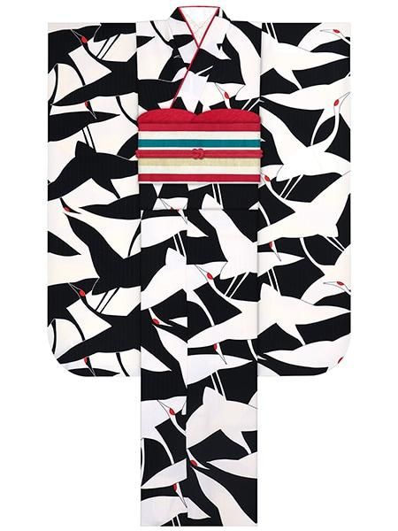 振袖レンタルセット フラッグ菊(黒)/帯 ドット(黒)