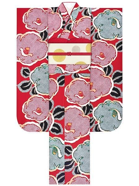 振袖レンタルセット 疋田椿(赤)/帯 亀甲(赤)
