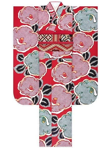 振袖レンタルセット 疋田乱菊(赤)/帯 花菱亀甲(黒)