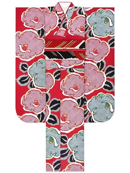振袖レンタルセット 大梅に椿(赤)/帯 花菱亀甲(白金)