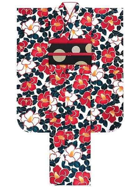 振袖レンタルセット 梅と椿と楓(オフ)/帯 矢羽根(赤)