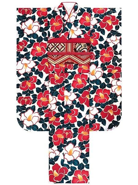 振袖レンタルセット ロココ(ターコイズグリーン)/帯 花菱亀甲(黒)