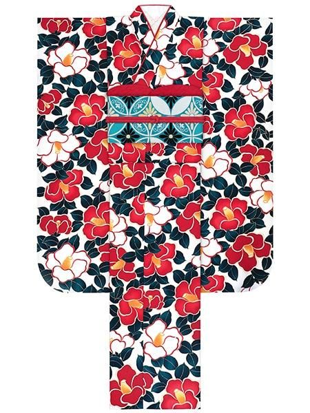 振袖レンタルセット 椿(黒)/帯 ドット(赤)