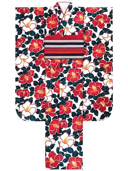 振袖レンタルセット 江戸牡丹(モノトーン)/帯 亀甲(赤)