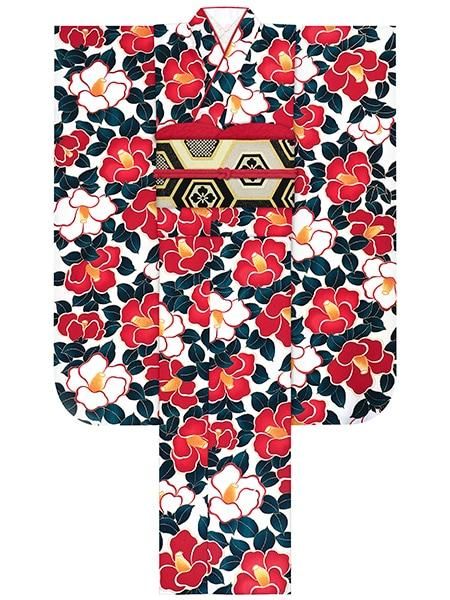 振袖レンタルセット レトロ椿(アイボリー)/帯 亀甲(オフ)