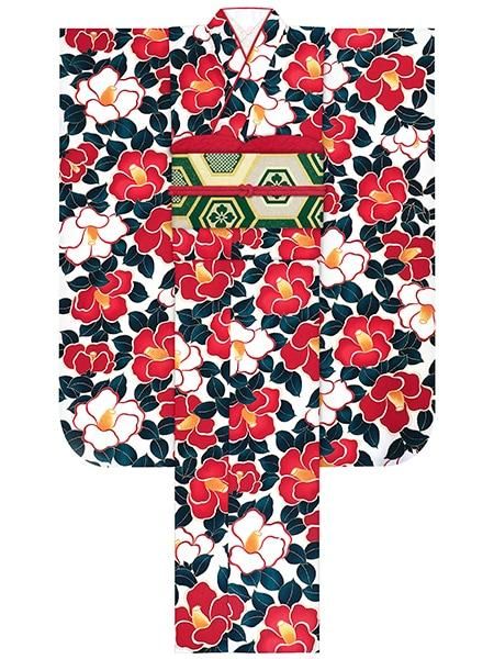 振袖レンタルセット つばき家紋(カラシ)/帯 矢羽根(ターコイズ)