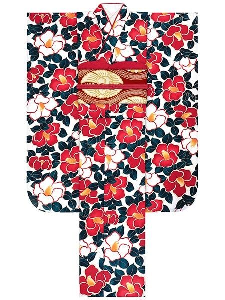 振袖レンタルセット 乙女椿(オフ)/帯 花菱亀甲(白金)