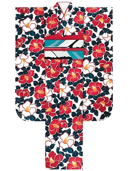 振袖レンタルセット 乙女椿(オフ)/帯 花菱亀甲(白金)
