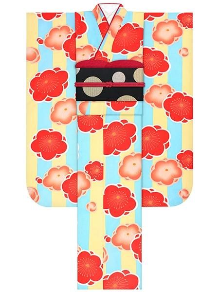 振袖レンタルセット 疋田乱菊(赤)/帯 ドット(オフ)