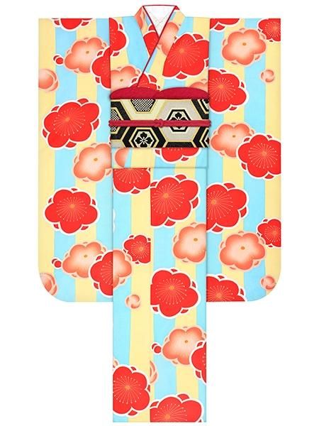 振袖レンタルセット 縞に梅(黄)/帯 花菱亀甲(黒)